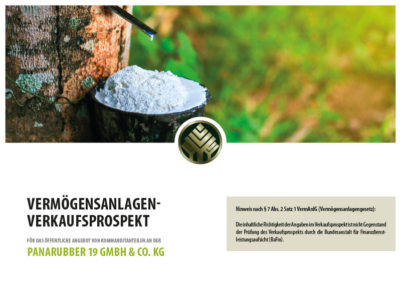 Der Anleger kann den veröffentlichten Vermögensanlagen-Verkaufsprospekt zu dieser Vermögensanlage und evtl. Nachträge hierzu sowie das Vermögensanlagen-Informationsblatt auf der Internetseite mail.mail.timberfarm.de abrufen und kostenlos bei der Anbieterin TIMBERFARM GmbH und/oder der Emittentin PANARUBBER 19 GmbH & Co. KG, beide Friedrich-Ebert-Str. 31, 40210 Düsseldorf anfordern.